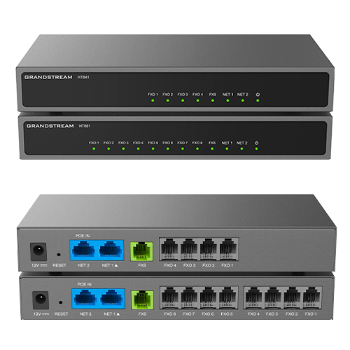 The HT841/881 FXO gateway series enables businesses of all sizes to create an easy-to-deploy VoIP solution. These FXO gateways offer the ability to seamlessly connect multiple locations and all devices within an office to any hosted or on premise IP PBX network to make deployments as easy as possible.